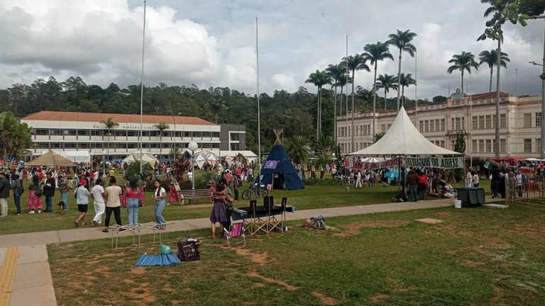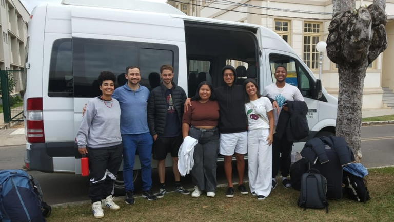 A caravana do campus Rio Pomba foi composta por 10 estudantes de graduação, sendo 8 do curso de Direito, um de Agroecologia e um de Agronomia.