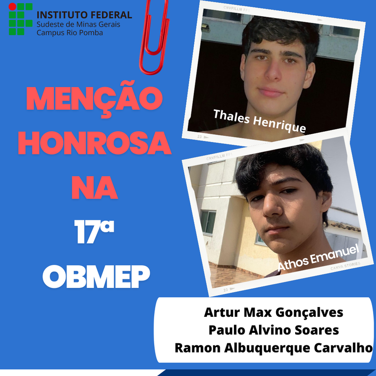 Estudantes dos cursos técnicos do Campus Rio Pomba são premiados na OBMEP