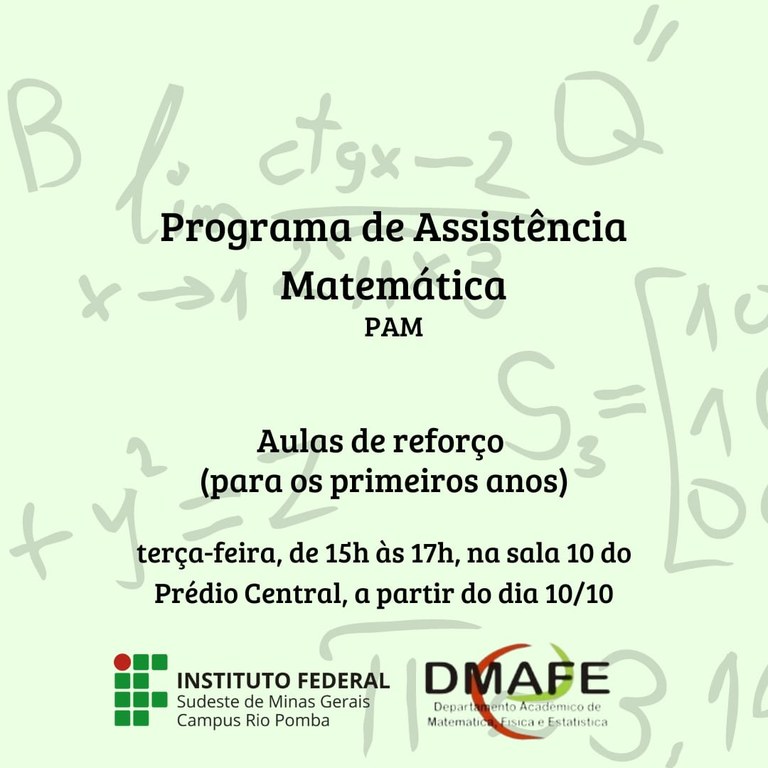 Estudantes dos cursos técnicos podem participar do Programa de Assistência Matemática - PAM