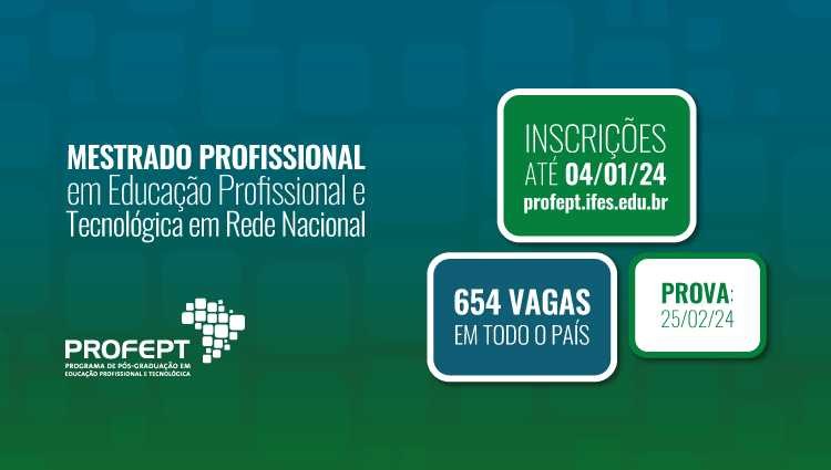 Inscrições até dia 4 de janeiro para o processo seletivo do Mestrado Profissional em Educação Profissional e Tecnológica (ProfEPT )