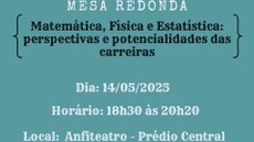 No mês de maio são comemorados os dias da Matemática (dia 6), do Físico (dia 19) e do Estatístico (dia 29). Para registrar datas tão importantes para estudantes, docentes e profissionais, o DMAFE programou uma mesa redonda com professores das três áreas, que irão apresentar as perspectivas e potencialidades acadêmicas e profissionais de cada uma.