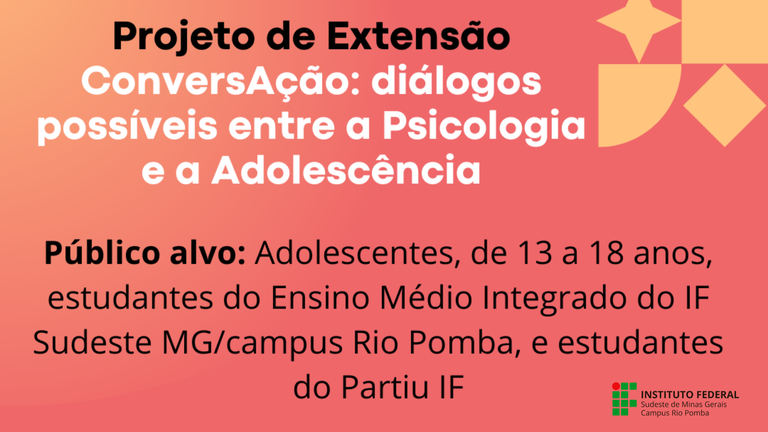 Podem participar adolescentes de 13 a 18 anos, estudantes do Ensino Médio Integrado do IF Sudeste MG/campus Rio Pomba, e estudantes do projeto Partiu IF