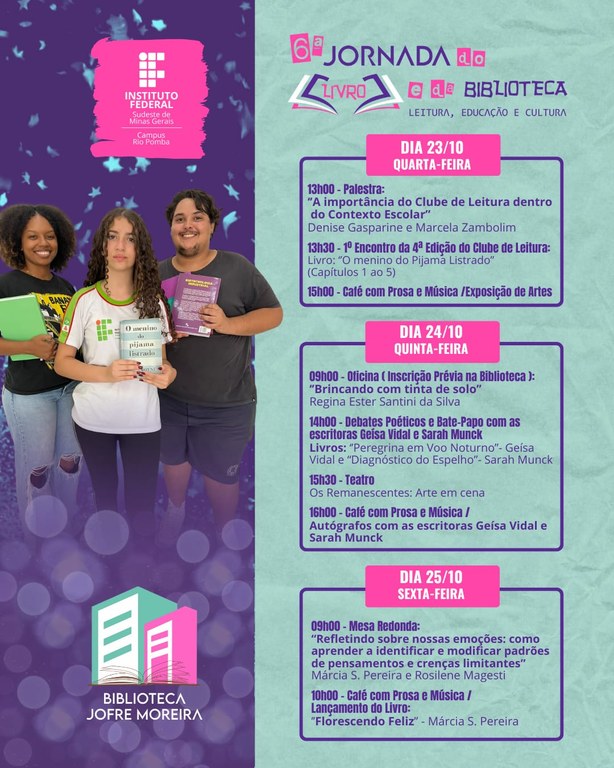 Semana do Livro e da Biblioteca do campus Rio Pomba acontece de 23 a 25 de outubro
