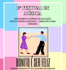 O VI Festival de Música acontece nesta quarta-feira, 14 de dezembro, às 13h, no Salão Nobre do campus Rio Pomba. Os estudantes dos segundos anos dos cursos técnicos participam do projeto interdisciplinar que envolve as disciplinas de Inglês, Espanhol e Português.