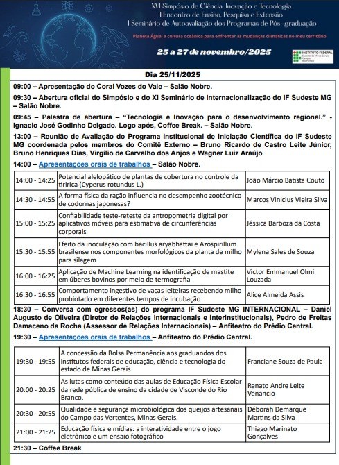 XVI Simpósio de Ciência, Inovação e Tecnologia do campus Rio Pomba começa nesta terça, 25/11