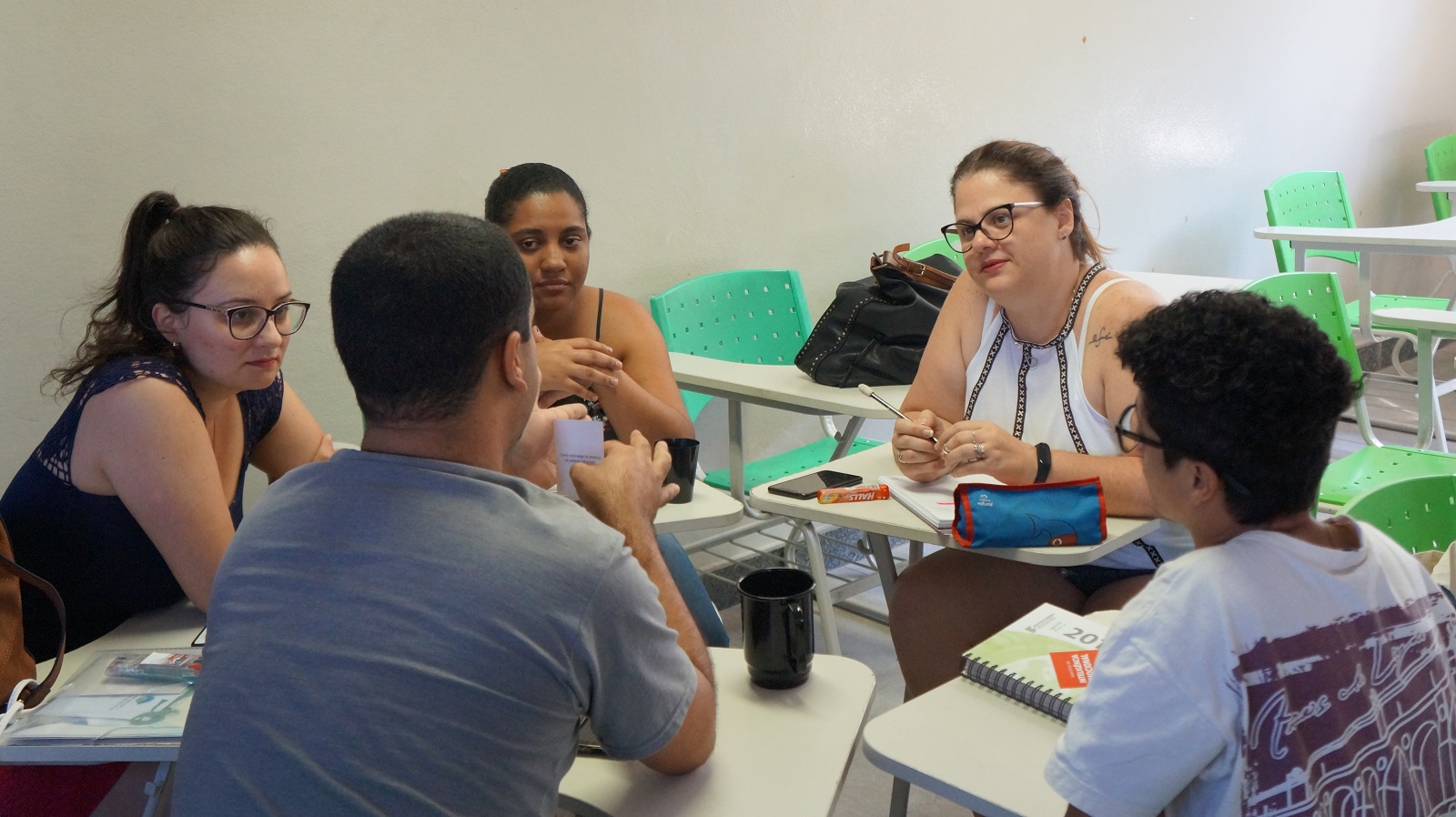 #pratodosverem: Imagem mostra grupo de discussão durante aula da pós-graduação em Práticas Pedagógicas na Educação Contemporânea, a primeira especialização do Campus Santos Dumont. Instituição avalia possibilidade de criar segunda pós na área de Educação.