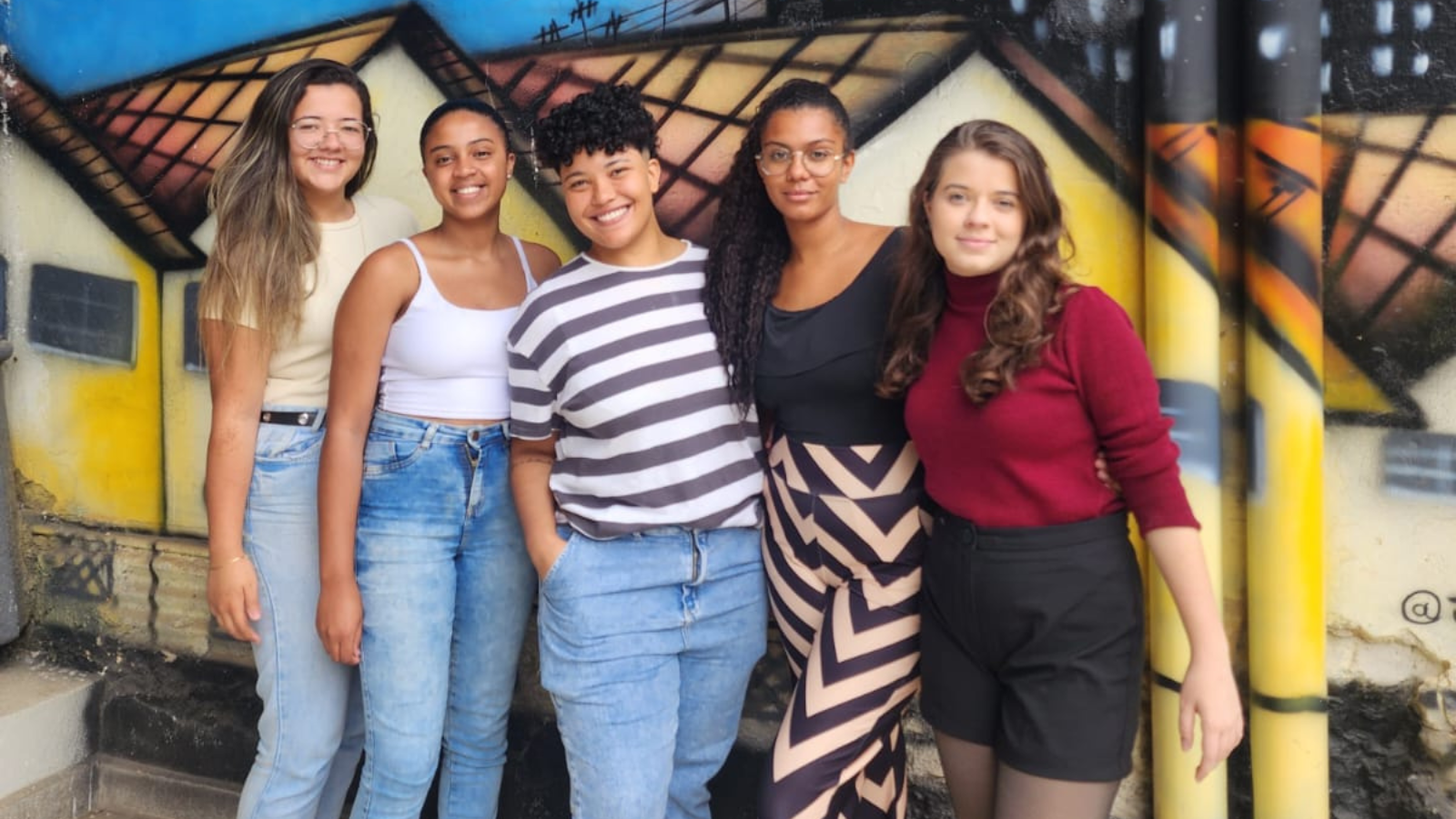 #pratodosverem: Aparecem na foto novas integrantes da diretoria da empresa júnior: Nicolly Emanuelle Reis (diretora de RH), Gabrielly Cristina Costa (diretora de Marketing), Stefani Alves (presidente), Vitória Juvenal (diretora de Projetos) e Juliana Toledo (vice-presidente).