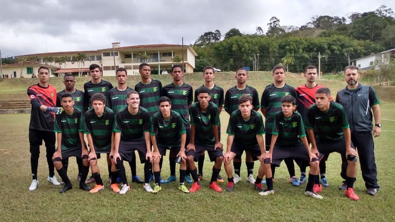 #pratodosverem: A imagem mostra o time de futebol do Campus Santos Dumont, com jogadores em pé e agachados, e à direita o professor de Educação Física Gustavo Pasqualini.
