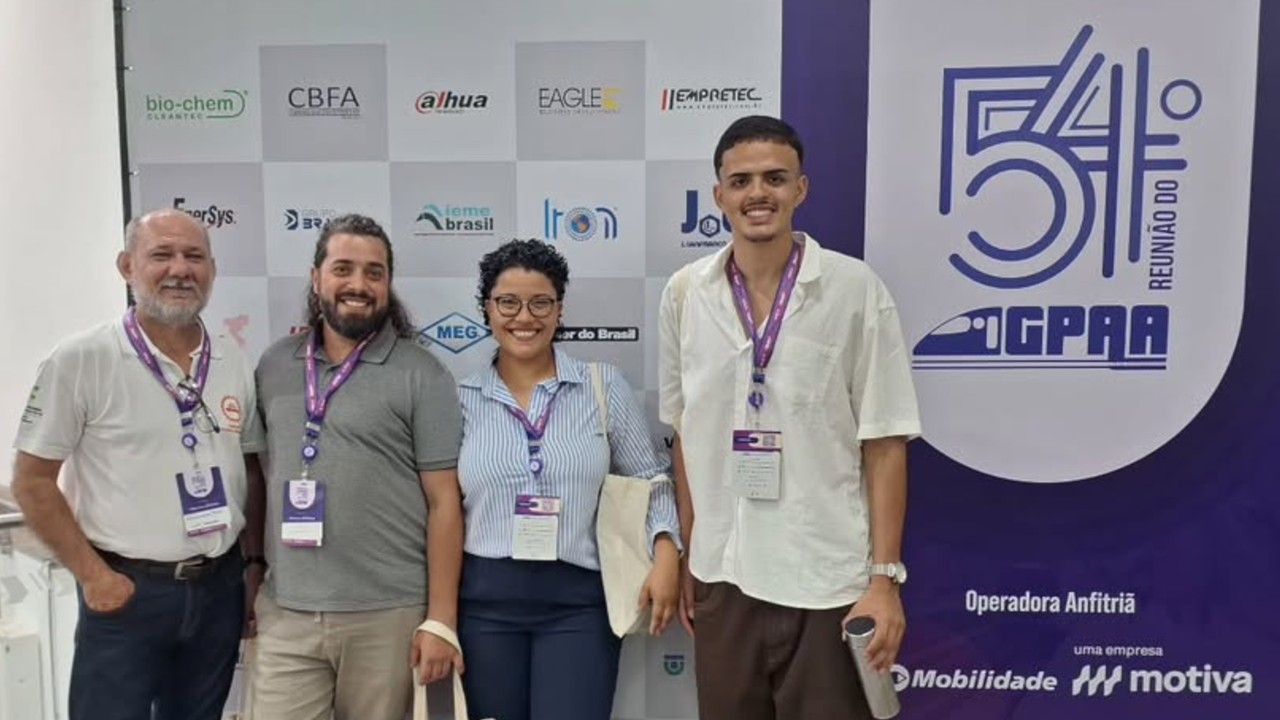 #pratodosverem: Imagem mostra professor Reginaldo e estudantes Gésio, Stefani e Yhorran na 54ª Reunião do GPAA. Foto: Gésio Costa