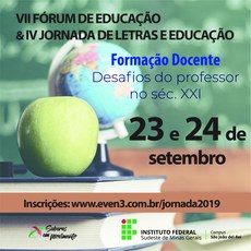 Começa nesta segunda-feira, dia 23 de setembro, a partir de 19h, o VII Fórum de Educação e IV Jornada de Letras e Educação. Esta edição traz a temática dos “Desafios do professor no século XXI”. O evento acontece até amanhã, 24, e conta com oficinas, mesa redonda, além das comunicações orais.
