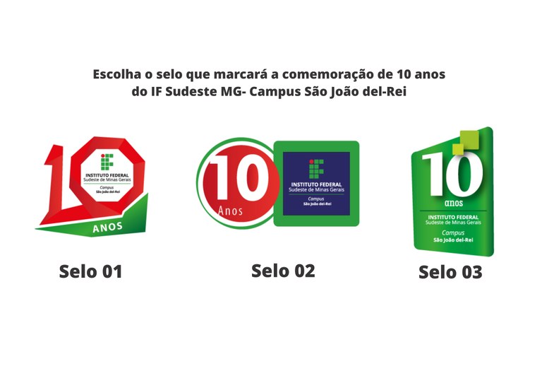 A Direção-Geral do Instituto Federal do Sudeste de Minas Gerais- Campus São João del-Rei, em parceria com a Coordenação de Comunicação e Eventos (CCOM) a enquete para escolha do selo que marcará a comemoração de 10 anos do Campus