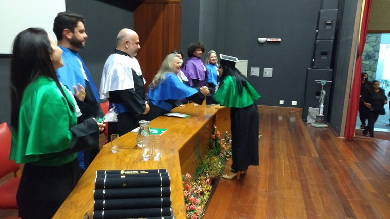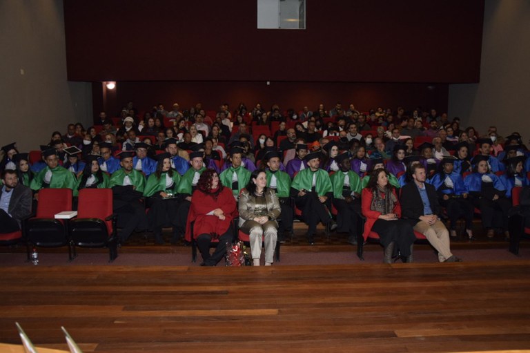 Colação de grau reunião alunos dos cursos de graduação de: Gestão Ambiental, Gestão de Recursos Humanos, Gestão de Tecnologia da Informação, Logística e Letras.