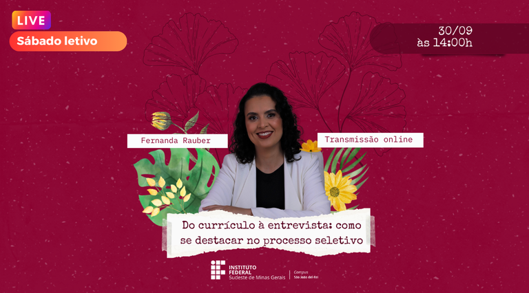 Como parte das atividades do segundo semestre de 2023 o IF Sudeste MG- Campus São João del-Rei apresenta no sábado, 30 de setembro, “Do currículo à entrevista: como se destacar no processo seletivo”