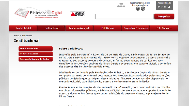 Biblioteca indica o uso da biblioteca virtual do governo do Estado