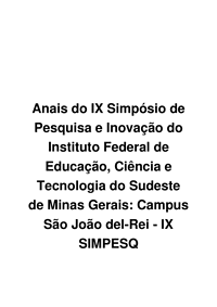 Anais do Simpósio de Pesquisa e Inovação (SIMPESQ) do IF Sudeste MG - Campus São João del-Rei